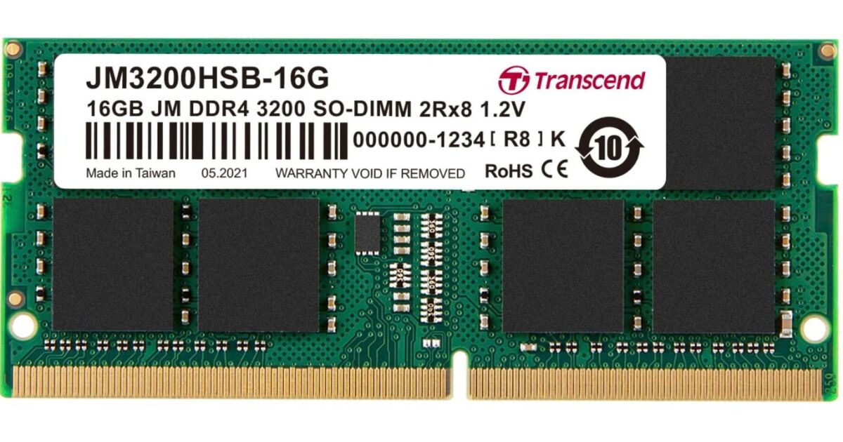 TRANSCEND 16GB JM DDR4 3200MHz SO-DIMM 2Rx8 1Gx8 CL22 1.2V