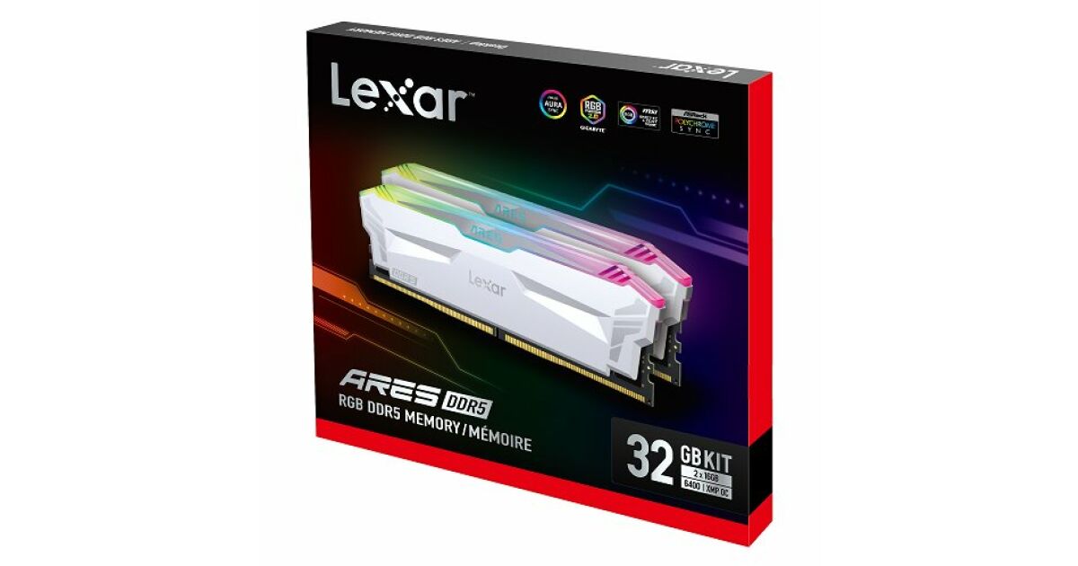 Lexar ARES DDR5 32GB (kit 2x16GB) UDIMM 6400MHz CL32 XMP 3.0 - RGB, Heatsink, bílá