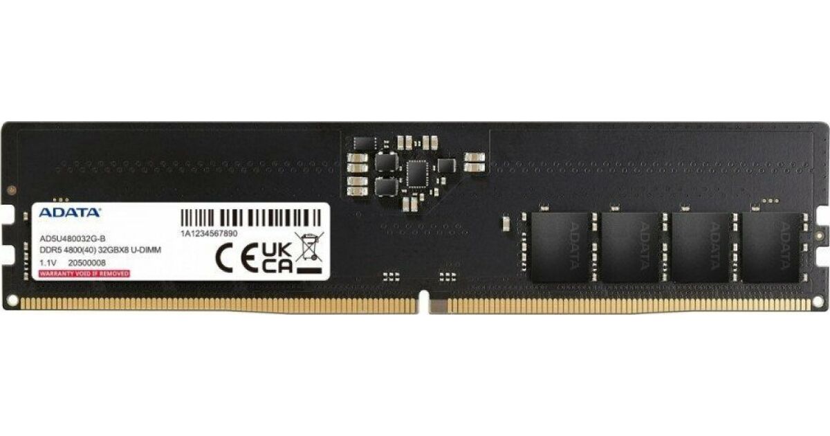 ADATA Premier . Przeznaczenie: PC, Pamięć wewnętrzna: 32 GB, Układ pamięci (moduły x rozmiar): 1 x 32 GB, Typ pamięci wewnętrznej: DDR5, Prędkość zegara pamięci: 4800 MHz, Rodzaj pamięci: 288-pin DIMM, Opóźnienie CAS: 40, Korekcja ECC