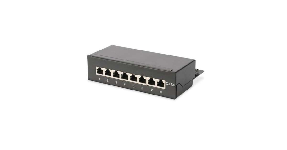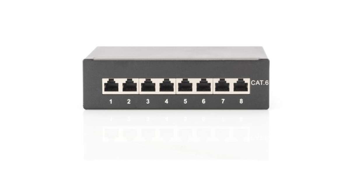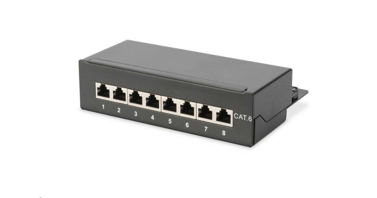 DIGITUS Patch Panel desktop 8Port Cat6 shielded black RAL9005 Cable installation via LSA strips colour-coded as EIA/TIA 568A+B