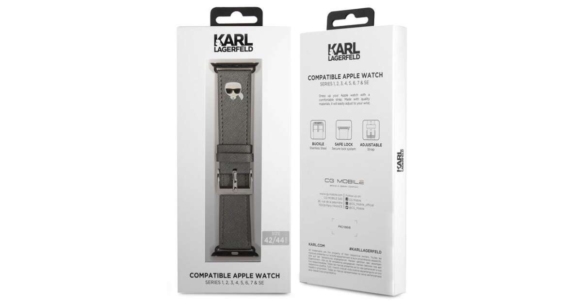 .boldy {font-size: 13pt; text-align: center; font-weight: bold} .h3ka {font-size: 15pt; ; font-weight: bold; text-align: center;} .tekst {font-size: 13pt; text-align: center;} .tabelka {border-collapse: collapse; width: 100%;} .tdka {border: 1px solid #dddddd;text-align: left;padding: 8px;} .trka:nth-child(even) {background-color: #dddddd;} Karl Lagerfeld Ikonik Saffiano Modny i niezwykle stylowy pasek do smartwatcha Apple Watch sygnowany domem mody Karl Lagerfeld. Akcesorium dedykowane jest do zegarka Apple Watch- koperta o średnicy 38/40/41 mm. Pasek został wykonany z wysokiej klasy skóry Saffiano. Materiał ten jest niezwykle wytrzymały na uszkodzenia mechaniczne i zarysowania, odporny na zabrudzenia i zamoczenia. Zastosowanie skóry Saffiano powoduje, że pasek jest niezwykle wytrzymały i nie sprawia dyskomfortu przy codziennym korzystaniu z zegarka wyposażonego w tą opaskę. Akcesorium zostało ozdobione wytłoczoną podobizną cenionego na całym świecie projektanta. Apple Watch wyposażony w pasek od Karla Lagerfelda będzie ozdobą godną pozazdroszczenia przez każdego, kto ceni luksusowe dodatki. Pasek jest regulowany do indywidualnego obwodu nadgarstka poprzez zapięcie typu klamra wykonanego z najwyższej jakości stali nierdzewnej.Produkt wyprodukowany na licencji Karl LagerfeldKolekcjaIkonik Saffiano TypStrapMateriałEko skóraKolorSrebrnyKompatybilnośćApple Watch 1/2/3/4/5/6/7/8/9/SE 2020/2022