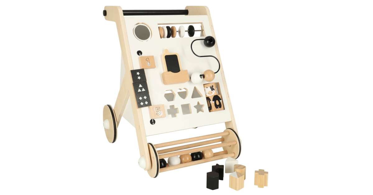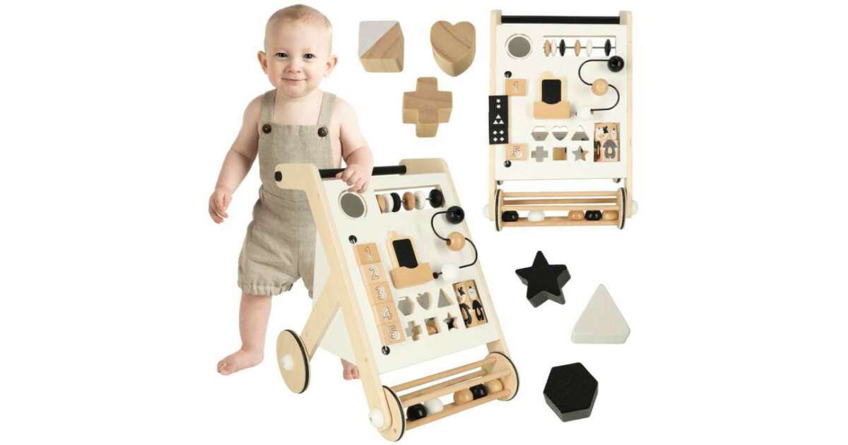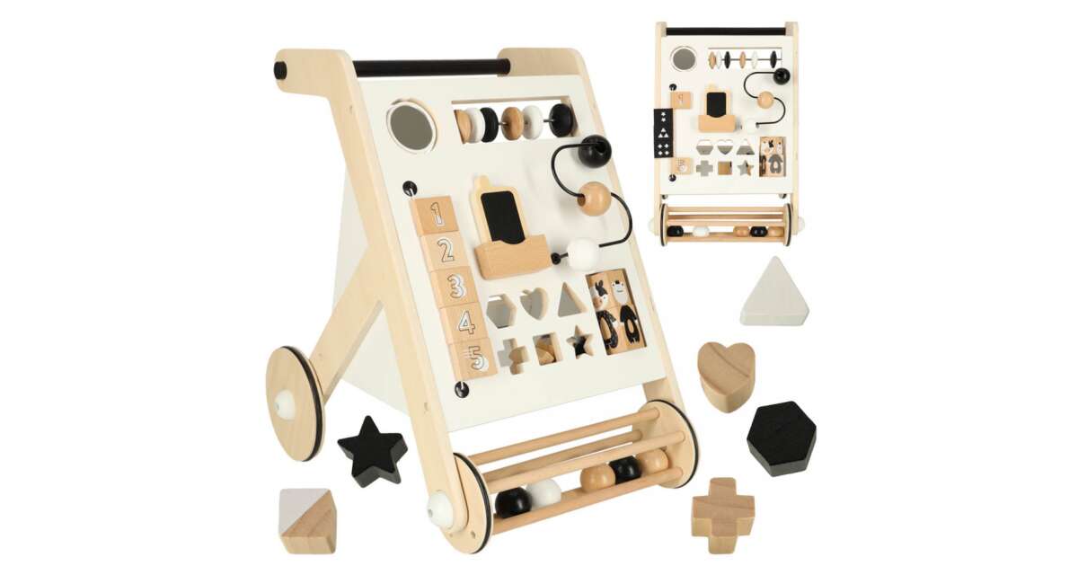 SZKOLENIE FA TOLO CHODZENIE RAMA SORTOWANIEPierwsze kroki małego dziecka uczącego się chodzić są niewątpliwie ogromnym wyzwaniem! Dadzą mu wiele satysfakcji, no i oczywiście Tobie również. Wózek dla dzieci jest nie tylko ciekawą zabawką, ale może być również wsparciem podczas nauki chodzenia. Drewniany wózek ma wbudowane zabawki rozwojowe, które pozwolą dziecku na świetną zabawę nawet wtedy, gdy nie będzie w nastroju do stawiania kolejnych trudnych kroków! Dzięki temu wózek stanie się ulubioną zabawką malucha! Twój maluch będzie się świetnie bawił, a Ty możesz mieć pewność, że zabawa będzie połączona z dbaniem o rozwój Twojego dziecka.Przesuwanie piłeczek, przestawianie tabliczek z cyferkami czy sortowanie klocków to proste zabawy, które niosą ze sobą mnóstwo korzyści! Pomagają one stymulować zręczność dziecka, zwłaszcza zdolności motoryczne palców i dłoni.Wciągająca zabawa, która rozwija szereg umiejętności u najmłodszego członka rodziny to marzenie każdego rodzica. Kupując dziecku drewniany, sortujący, edukacyjny wózek, można połączyć zabawę z edukacją już od najmłodszych lat. Należy jednak pamiętać, że nauka chodzenia to proces, który dziecko będzie musiało przejść samodzielnie - drewniany wózek będzie tylko jednym z akcesoriów, które uprzyjemnią część tej nauki. Wygodna rączka o wysokości 48 cm pozwala dziecku na utrzymanie wygodnej pozycji podczas stawiania pierwszych kroków. Plecy pozostają wyprostowane, co rozwija prawidłowe nawyki u dziecka. Łatwy do trzymania uchwyt umożliwia bezpieczną naukę chodzenia. Specyfikacja.