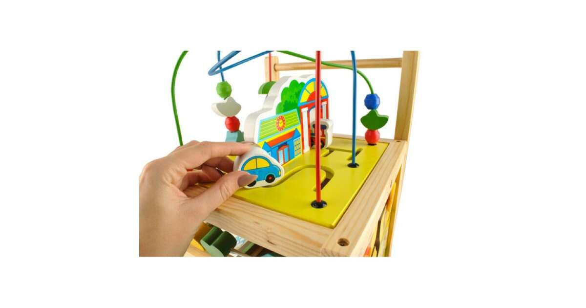 - Kreatywna zabawa: Na każdej stronie kostki znajdują się inne kreatywne zabawki, co zapewnia ciągłą ekscytację i różnorodną zabawę. Korale motoryczne można też używać osobno.