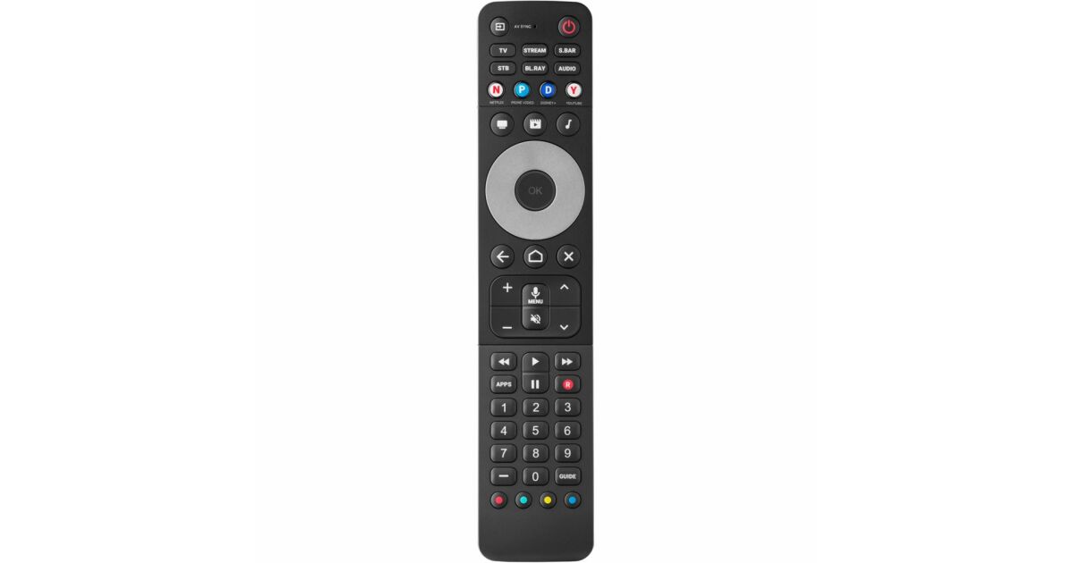 - Sterowanie 6 urządzeniami: TV, dekoder, DVD/Blu-ray, audio, soundbar, konsole do gier i urządzenia streamingowe (IR)