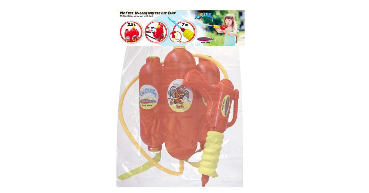 Mc Fizz Wasserspritze z Tankrucksakiem 2,5LCechy produktuWysoka jakość wykonania oraz funkcjonalność sprawiają, że Mc Fizz Wasserspritze to doskonały wybór na letnie zabawy w wodzie.SpecyfikacjaStylowy design strażackiPojemność tankrucksacka: 2,5LZasięg do 7 metrówRegulowane szelki dla komfortu użytkowania