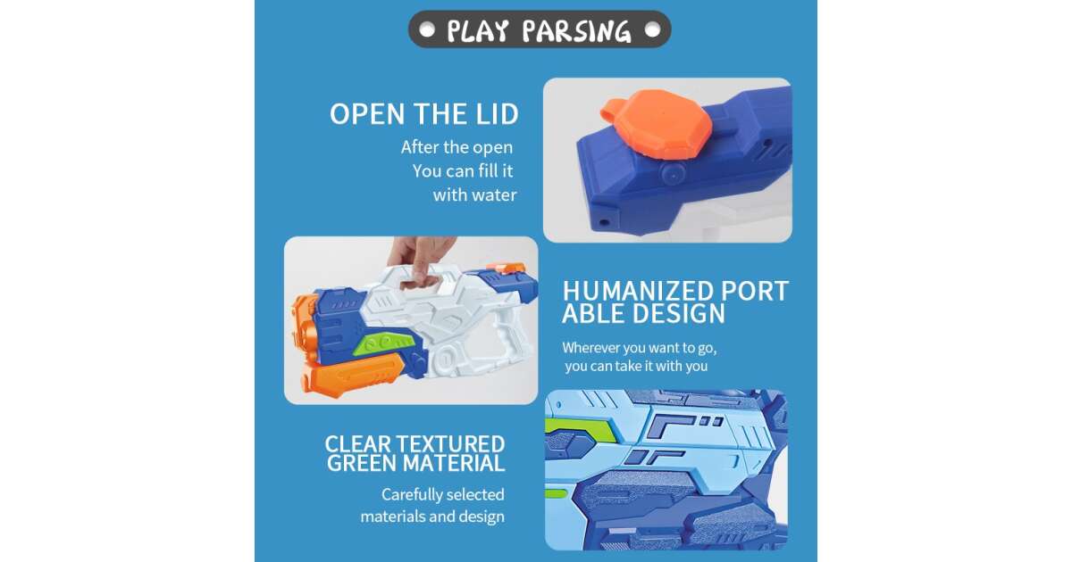 Ten wspaniały pistolet na wodę Flippy to idealny wybór dla dzieci powyżej 6 roku życia na gorące letnie dni. Dzięki dużemu zbiornikowi na wodę o pojemności 1500 ml możesz prowadzić długotrwałe bitwy wodne na plaży, na basenie, a nawet w ogrodzie.