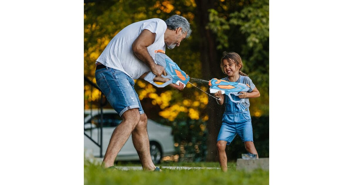 Zabierz swoje dzieci na plażę, basen lub na podwórko i cieszcie się dniem pełnym śmiechu i wodnych przygód. Ten pistolet na wodę jest idealny do gier rodzinnych lub z przyjaciółmi.