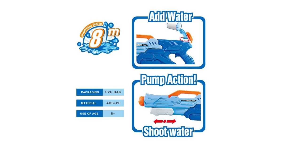 - 💦 Duży zbiornik o pojemności 1500 ml: Więcej zabawy bez częstego napełniania.