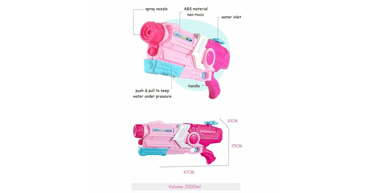 Pistolet na wodę dla dzieci, zbiornik, na basen/plażę, Flippy, 6 lat+, różowy, 2000 ml