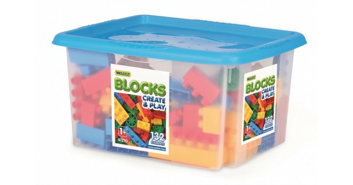 Klocki Blocks firmy Wader to zestaw 132 różnokształtnych, kolorowych elementów, które pozwalają na stworzenie mnóstwa fantastycznych konstrukcji.
