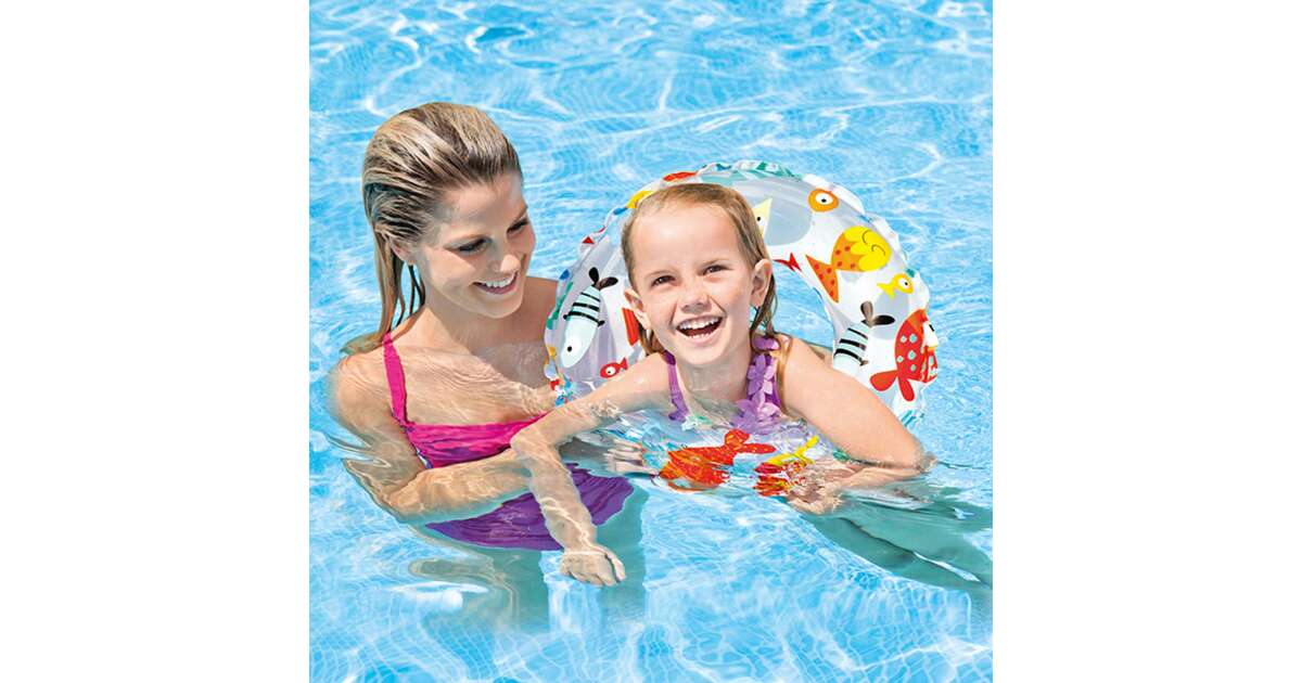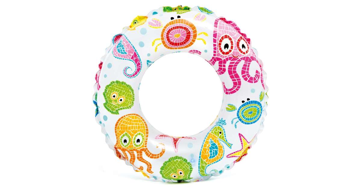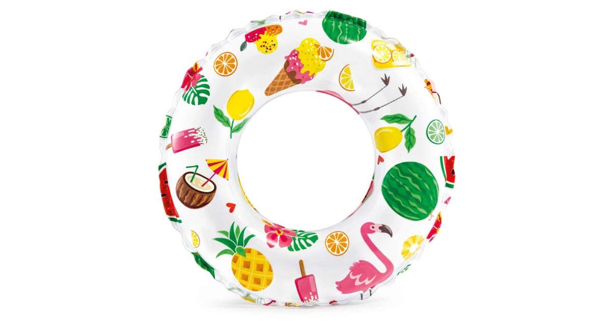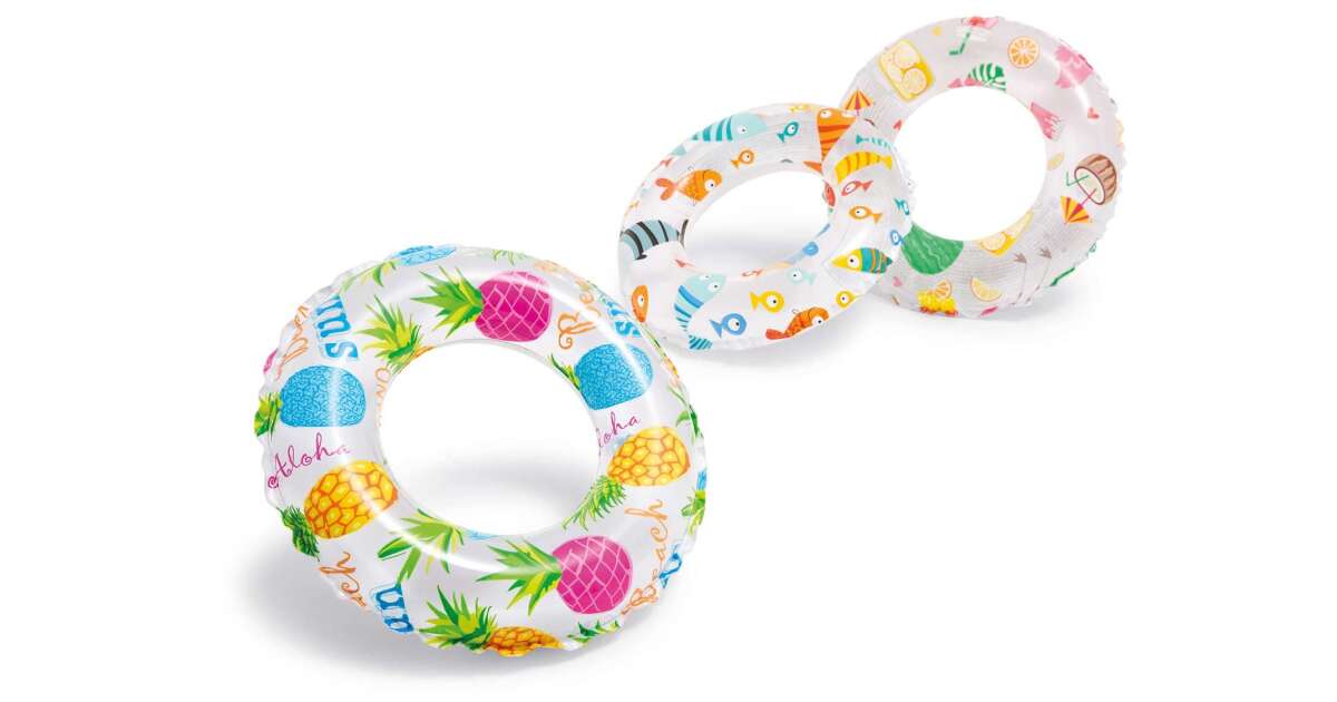 Wesołe letnie przygody w wodzie! To koło ratunkowe Intex to idealny wybór dla dzieci w wieku 3-6 lat. Koło o średnicy 51 cm dostępne jest w trzech różnych, kolorowych wzorach: palmy i ananasy, kolorowe rybki oraz mozaika morskich stworzeń.