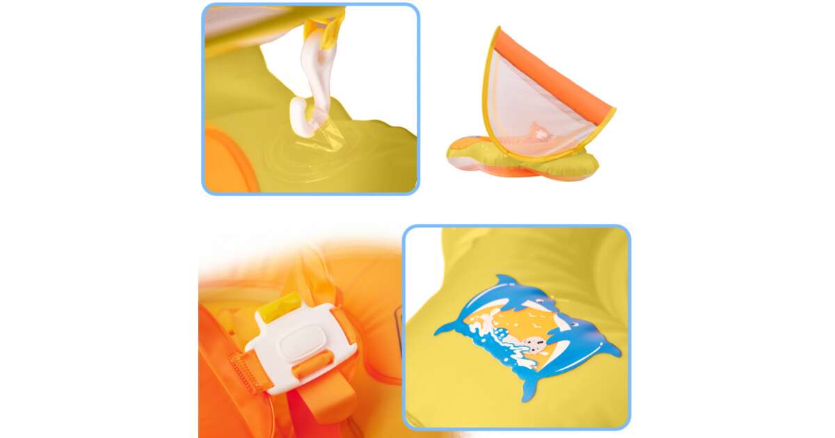To wesołe, nadmuchiwane kółko to idealny wybór do bezpiecznego i zabawnego pluskania się dla niemowląt i małych dzieci. Wbudowany daszek chroni przed szkodliwymi promieniami słonecznymi, dzięki czemu maluchy mogą spokojnie pluskać się w wodzie. Specjalna konstrukcja zapewnia bezpieczeństwo dziecka i zapobiega wypadnięciu z kółka. Produkt zapewnia doskonałą stabilność, dzięki czemu zabawa jest przyjemna i wesoła.