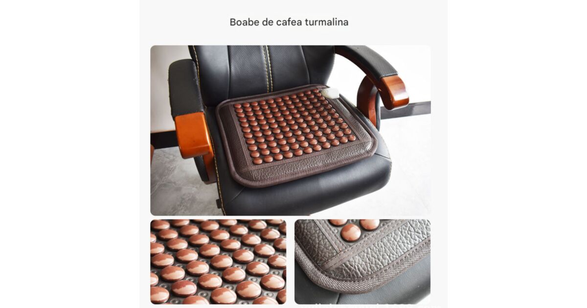 Podparcie siedziska do krzesła z kamieniami jadeitowymi z podgrzewaniem, Arvada® KingRelax, promienie podczerwone, timer ogrzewania 45x54 cm (osobisty stymulator ciepła), wzór ziaren kawy, tu opis
