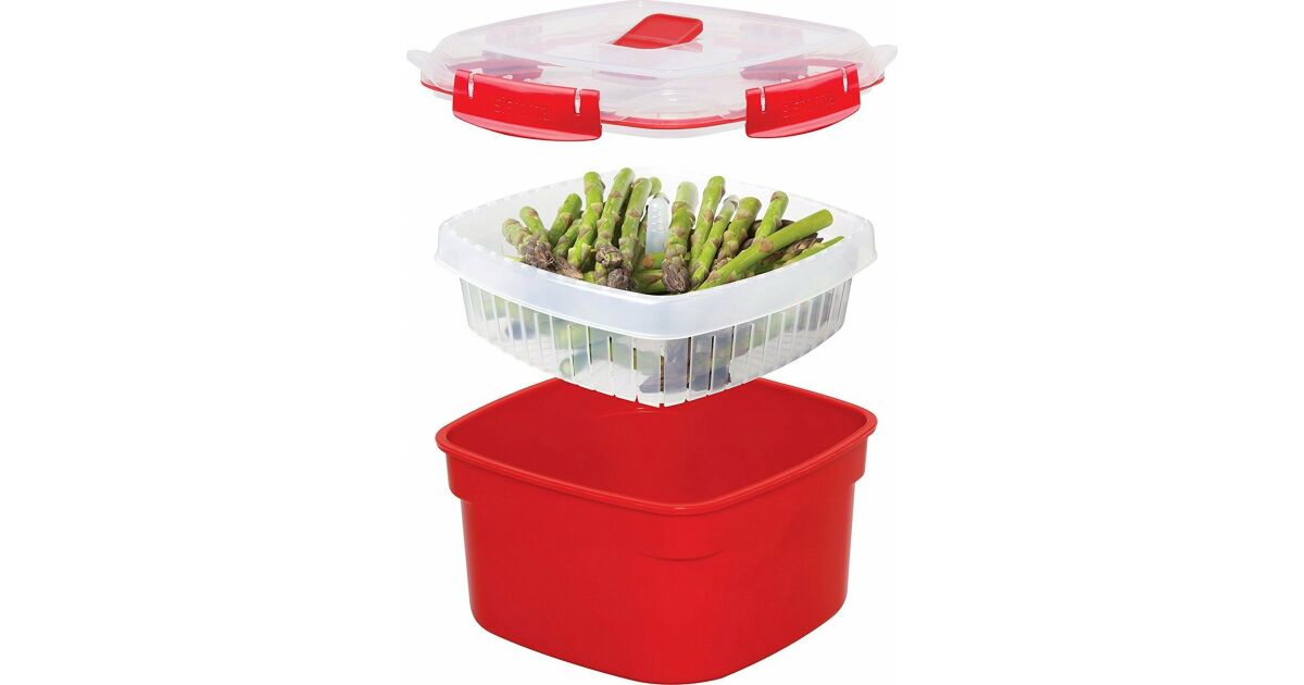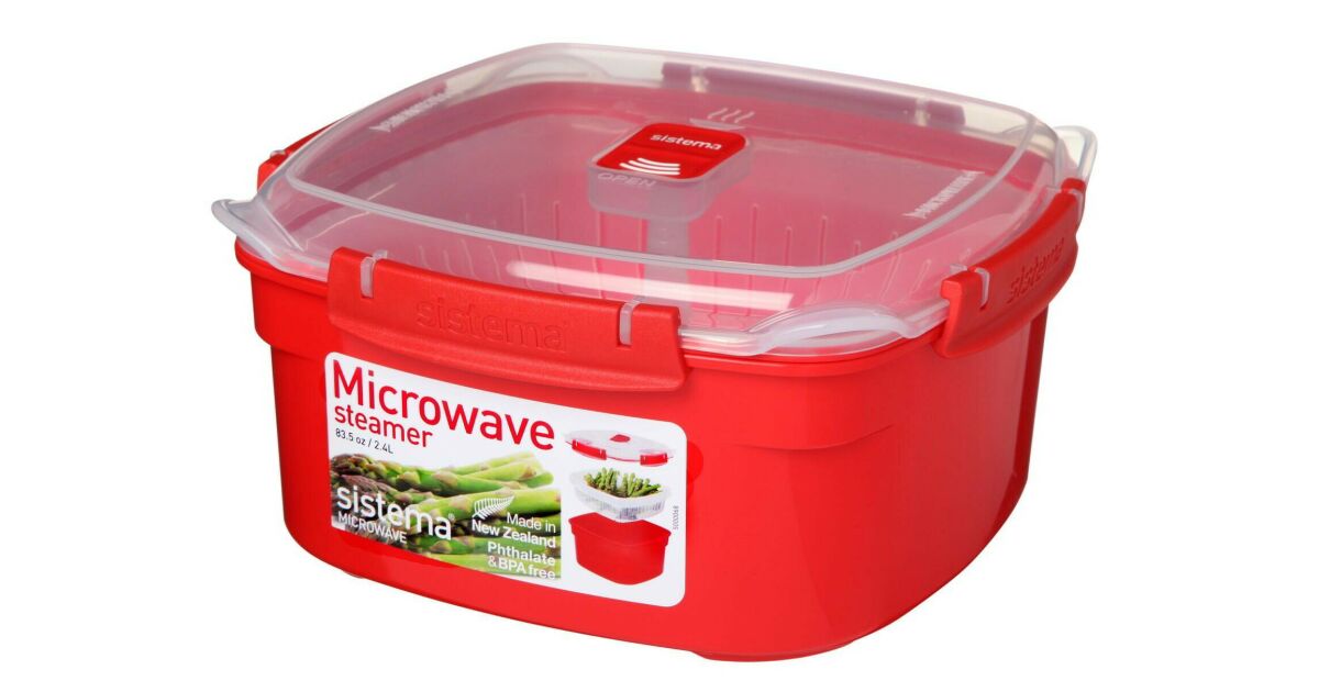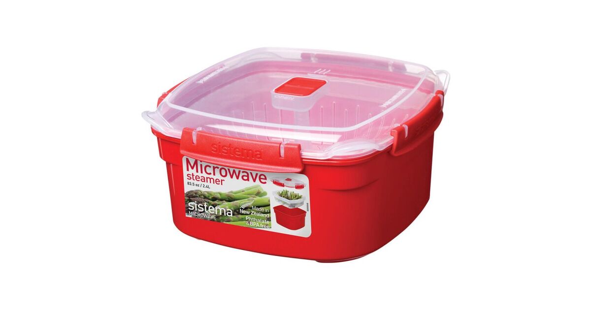 .flex-container {display: flex; padding: 3%;} .flex-item {flex: 1; padding: 2%;} .content-image {max-width: 100%;height: auto;}Mikrofalowy parowar Sistema o pojemności 2400 ml . szerokość: 209 mm głębokość: 209 mm wysokość: 105 mm pojemność: 2400 ml . KOLOR: CZERWONYChcesz przyrządzić sobie zdrowy i pożywny posiłek na parze, ale nie masz parowara w formie garnka? Zafunduj sobie pojemnik do gotowania marki Sistema, dzięki któremu szybko i zdrowo przygotujesz swoje ulubione warzywa czy rybę na obiad. Dzięki wygodnym uchwytom w pokrywie nie spalisz swoich dłoni podczas otwierania pojemnika.Pojemniki do żywności marki Sistema to wysoka jakość, interesujący design i różnorodne zastosowanie, wykonane są z najwyższej jakości plastiku (polipropylen klasy 5), są bezpieczne dla zdrowia, nie zawierają ftalanów i BPA.Elegancki pojemnik doskonale sprawdzi się zarówno w domu, jak i w pracy. Można go używać w kuchence mikrofalowej, myć w zmywarce, a nawet zamrażać w nim posiłki.