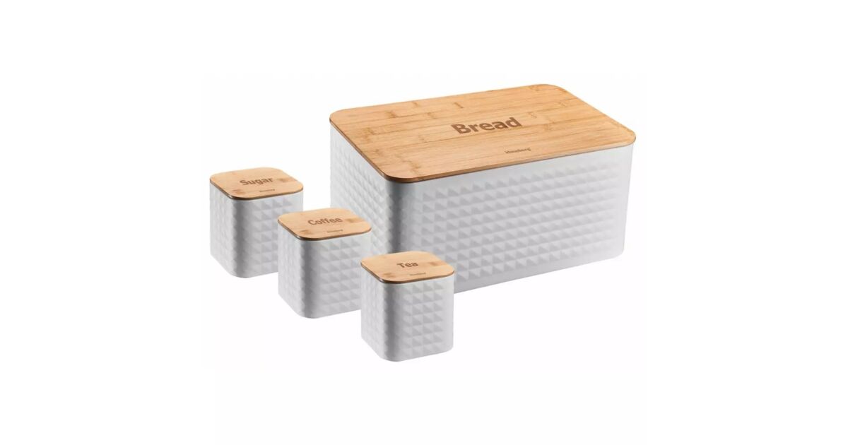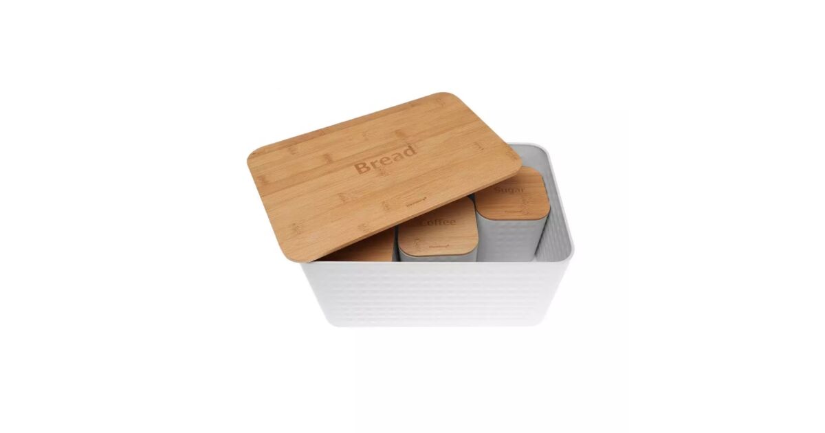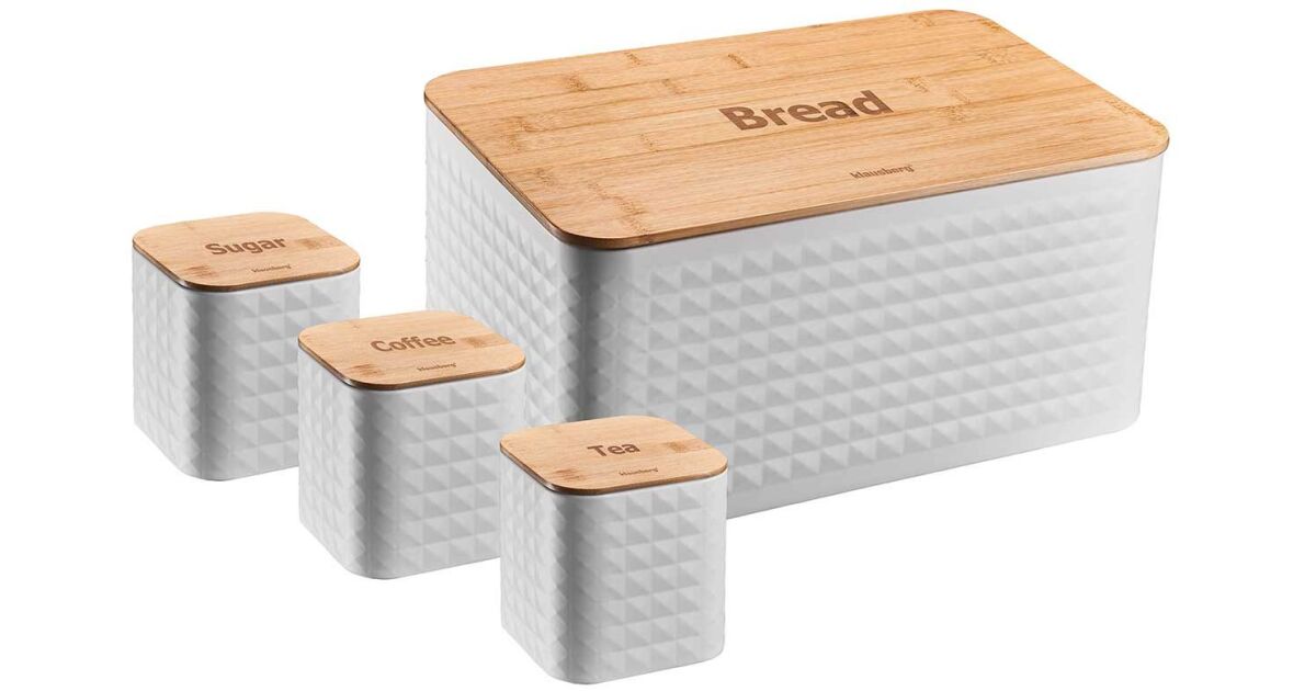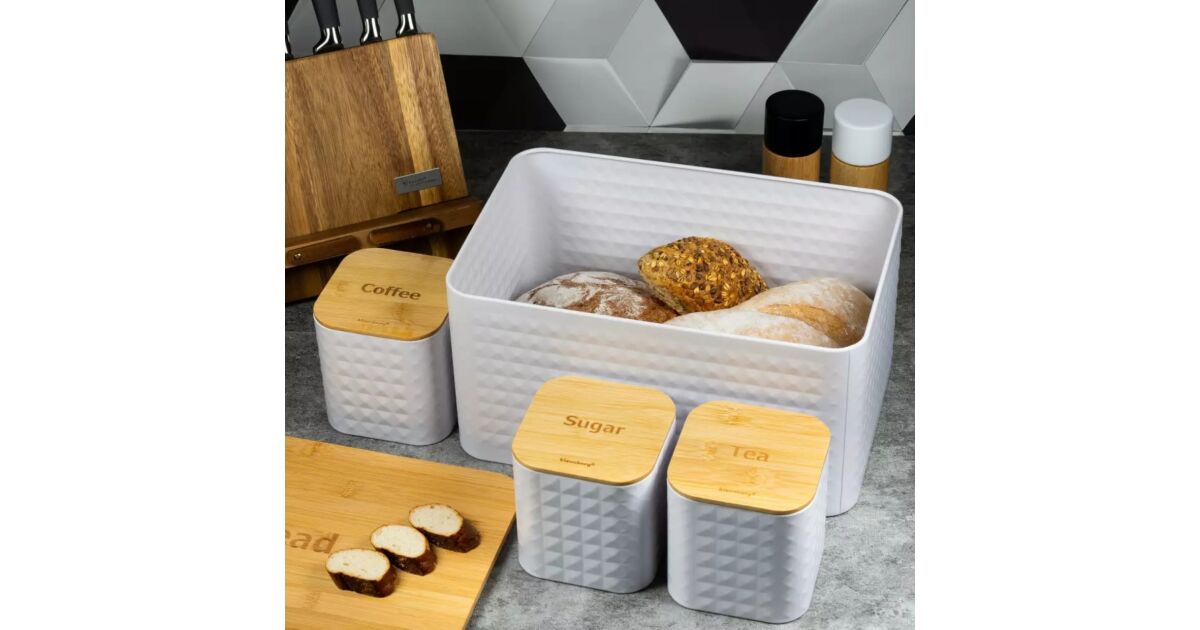 Chlebak stalowy z deską bambusową oraz zestawem pojemników kuchennych KLAUSBERG