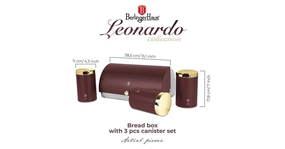Pojemnik na chleb z pojemnikami Leonardo Berlinger Haus BH 6737, bordowy, stal nierdzewna