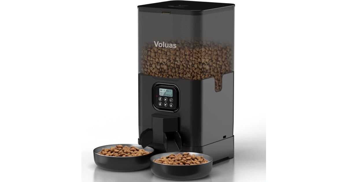 Optymalny wybór: Zapobiegnij kradzieży karmy przez kota dzięki temu automatycznemu dozownikowi karmy suchej, zapewniając zbilansowane i zdrowe odżywianie dla Twoich pupili. Zaprojektowany dla dwóch kotów: Podwójny podajnik z przegródką, dwie miski ze stali nierdzewnej i automatyczny harmonogram regularnego karmienia. Równe i precyzyjne porcje: Dozuje równe ilości karmy, o pojemności 6 litrów, do 4 posiłków dziennie. Inteligentne funkcje: Nagrywa 10-sekundowe komunikaty, ustawia timery i funkcja pamięci, aby zapobiec utracie harmonogramu karmienia. Bezpieczny i niezawodny: Konstrukcja zabezpieczona przed zwierzętami z blokowaną pokrywą i sitkiem oraz systemem zabezpieczającym przed zatorami, zapewniającym nieprzerwany dopływ karmy.