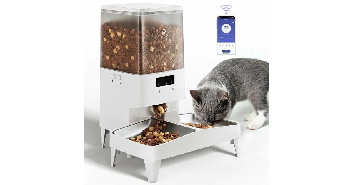 Wersja WiFi podajnika: Obsługuje połączenie z siecią WiFi 2,4 GHz. Używając smartfona z systemem Android lub iOS, możesz programować i kontrolować karmienie zwierząt domowych za pomocą aplikacji, ustawiając harmonogram każdego posiłku z dowolnego miejsca i o dowolnej porze. Zaplanowane karmienie jest kontynuowane nawet po rozłączeniu WiFi, co zmniejsza Twoje obawy. Silnik z biegiem wstecznym, aby zapobiec zatkaniu: Jeśli karma się zablokuje, silnik automatycznie uruchamia się w kierunku przeciwnym, aby wyeliminować blokady i zminimalizować ryzyko zatkania. Podajnik jest kompatybilny wyłącznie z karmą suchą, mieszaną i półwilgotną o średnicy od 3 do 18 mm. Mieszaj ulubione formuły karmy swojego zwierzaka, aby posiłki były przyjemniejsze. Łatwa konfiguracja i precyzyjne dozowanie: Podajnik jest zaprogramowany na 6 posiłków dziennie, z których każdy można ustawić od 1 do 60 porcji (około 10 g na porcję). Naukowe podejście do dawkowania, eliminujące nadmiar, promuje zdrowe nawyki żywieniowe zwierząt domowych. Hermetyczne wieczko i pochłaniające wilgoć opakowanie utrzymują świeżość karmy. Miski ze stali nierdzewnej: Miski odporne na bakterie zapobiegają rozwojowi trądziku i innych problemów skórnych u kotów. Podwyższona konstrukcja zmniejsza obciążenie stawów i kręgosłupa małych zwierząt, pomagając zmniejszyć ryzyko zapalenia stawów. Duża pojemność: Zbiornik o pojemności 5 litrów pozwala na karmienie jednego dorosłego kota przez maksymalnie 30 dni lub dwóch kotów przez 15 dni. Jeśli wyjeżdżasz na krótko, nie musisz się martwić, że Twój pupil będzie głodny. Możliwość przełączania między pojedynczą i podwójną miską pozwala zwierzętom w domach z dwoma kotami równomiernie dzielić się jedzeniem, unikając konfliktów. Niezawodne zasilanie i funkcja pamięci: Zaleca się korzystanie z kabla USB do ciągłego zasilania, ponieważ baterie wystarczają na około 2 miesiące. Trzy baterie D są dostarczane jako zasilanie awaryjne. Funkcja pamięci zapamiętuje ustawienia harmonogramu karmienia w przypadku zaniku zasilania, więc po przywróceniu zasilania nie musisz ponownie konfigurować karmnika, oszczędzając czas i wysiłek.