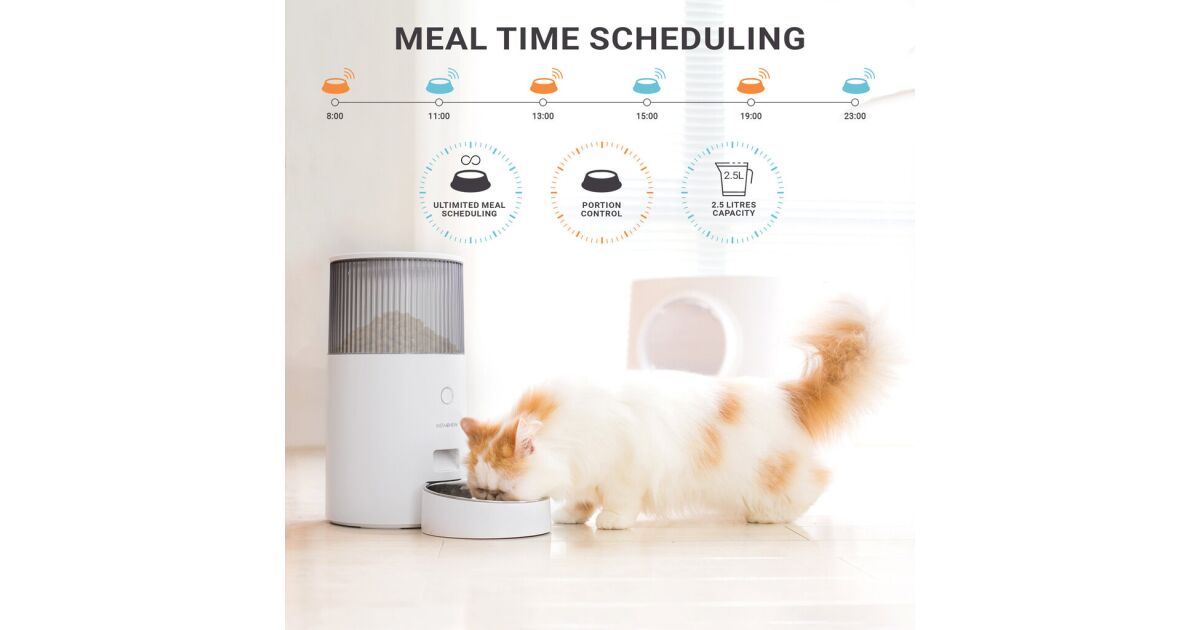 Karmnik wykonany jest z przyjaznych dla środowiska materiałów spożywczych, co zapewnia bezpieczeństwo karmienia zwierząt i dostarcza im radości i przyjemności. Zapewnia szczelne i suche przechowywanie karmy dla kota, gwarantując świeżość każdego posiłku. Interaktywne karmienie za pomocą aplikacji. Funkcja automatycznego karmienia pozwala łatwo karmić zwierzaka zgodnie z ustalonym harmonogramem. Natychmiastowe karmienie za pomocą aplikacji pozwala karmić zwierzaka o każdej porze i w dowolnym miejscu z połączeniem sieciowym. Specjalna technologia zapobiega przywieraniu jedzenia, eliminując niepotrzebne zmartwienia. Kontrola porcji. Za pomocą aplikacji możesz ustawić liczbę karmień dziennie i ich objętość, pomagając utrzymać zdrową dietę Twojego zwierzaka. Pełna kontrola i śledzenie diety pozwala monitorować odżywianie Twojego zwierzaka, zapewniając mu zdrowe życie. Zwiększona pojemność przechowywania. Karmnik o pojemności 2,5 litra jest zawsze szczelny, a świeże pojemniki zapewniają wystarczającą ilość pożywienia dla Twojego zwierzaka. Możesz być pewien jego codziennego odżywiania, nawet gdy jesteś poza domem, skupiasz się na pracy lub cieszysz się wakacjami. Obsługiwane produkty spożywcze. Podajnik jest kompatybilny z suchą karmą o średnicy od 5 do 35 mm, co jest szczególnie ważne dla zwierząt karmionych karmą dentystyczną, która zazwyczaj jest większa niż standardowa. Kompatybilność z częstotliwościami 5 GHz i 2,4 GHz. Najnowsze technologie pozwalają na pracę zarówno na częstotliwościach 5 GHz, jak i 2,4 GHz, redukując opóźnienia i zapewniając stabilne połączenie.