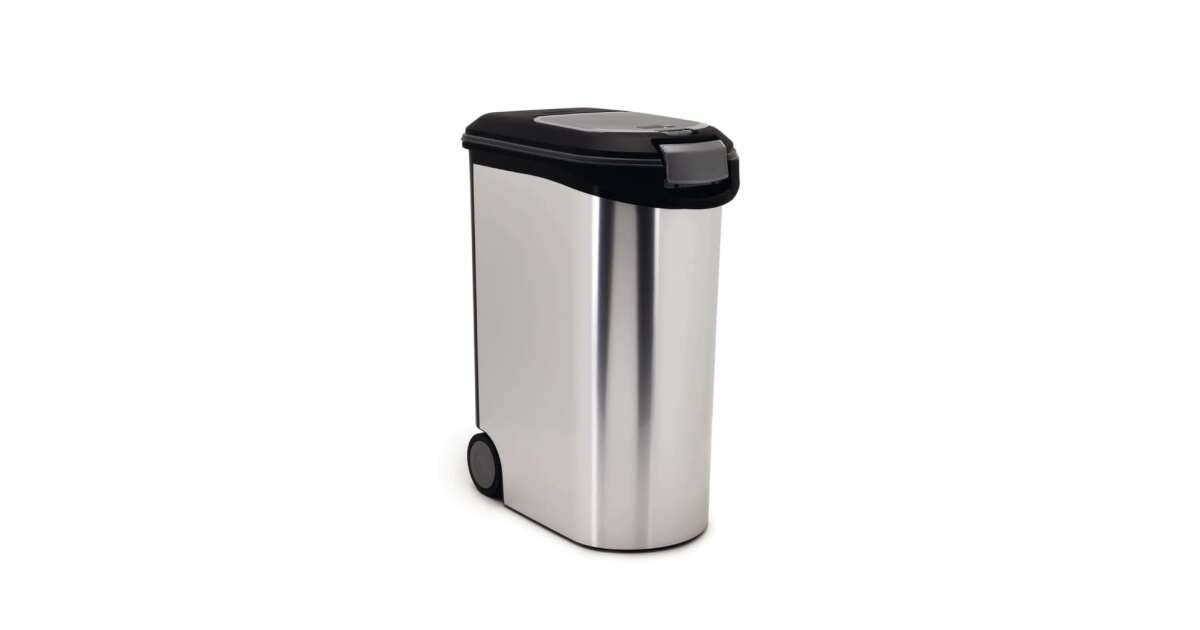 Pojemnik można łatwo otwierać i zamykać, a dzięki podwójnej pokrywie można go wygodnie napełniać i dozować karmę. Dzięki kółkom można go łatwo przenosić, dzięki czemu można go umieścić w dowolnym miejscu w kuchni lub w schowku.