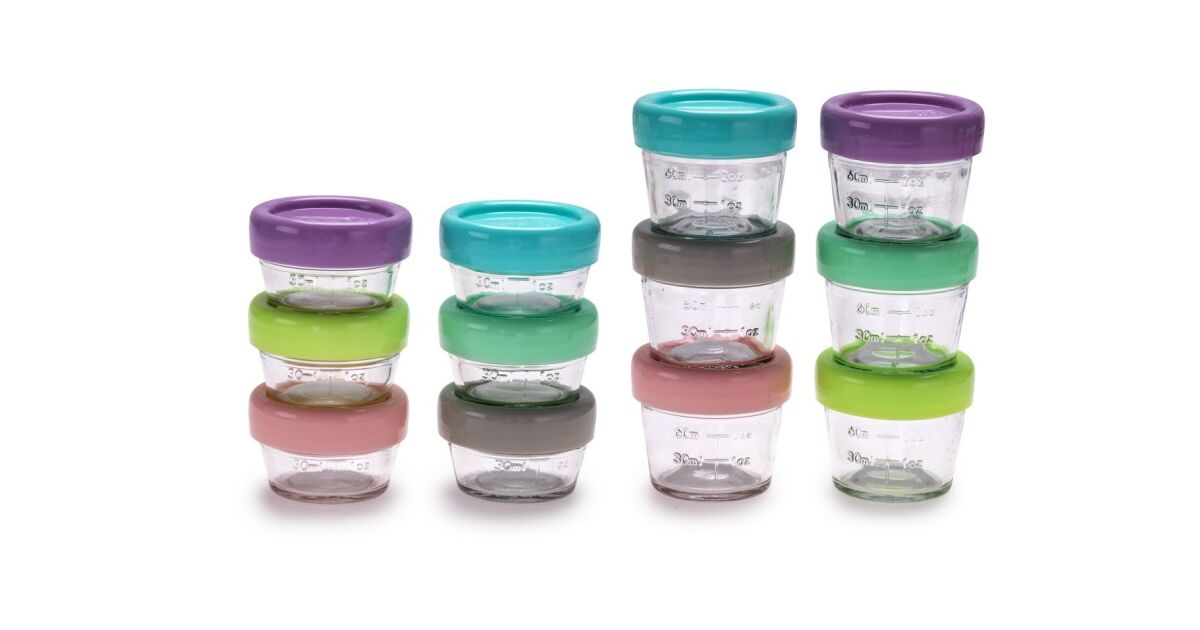 Zestaw 12 pojemników na butelki z jedzeniem dla dzieci, Melii, 6*59 ml + 6*118 ml opis