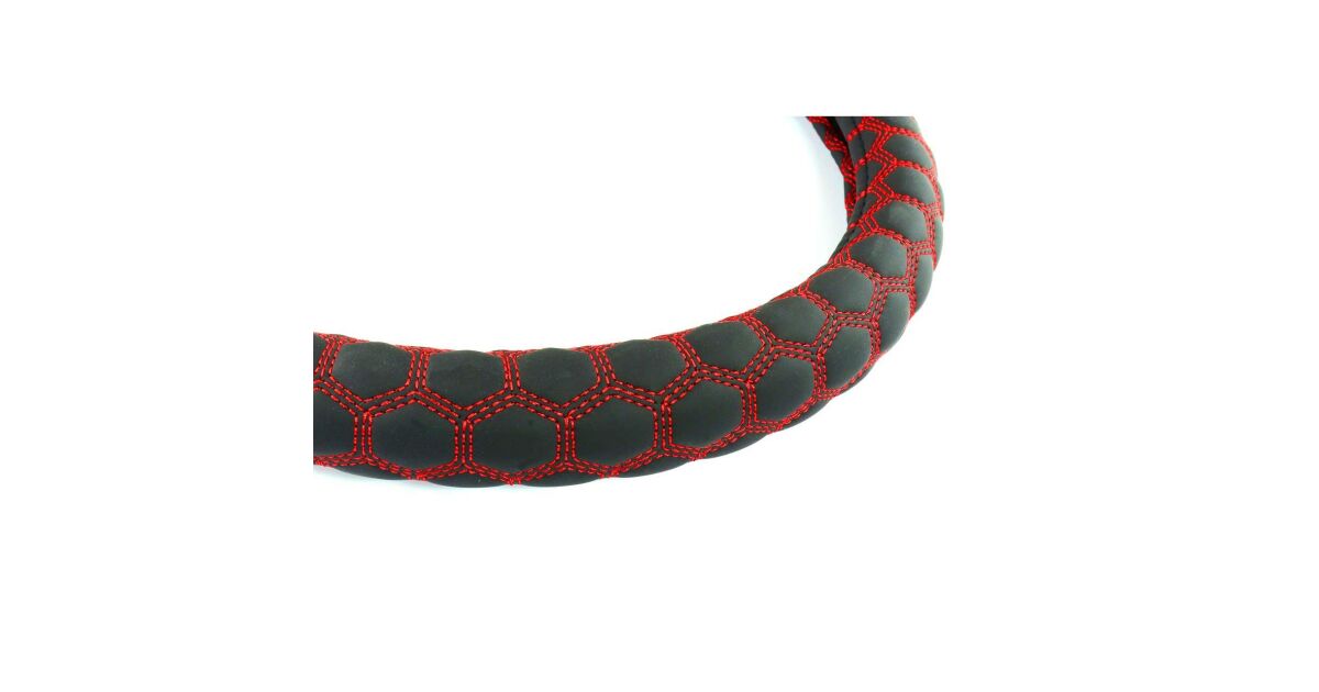 Pokrowiec na kierownicę z czerwonym przeszyciem model Hexa SWC-23-M (37-39 cm) opis