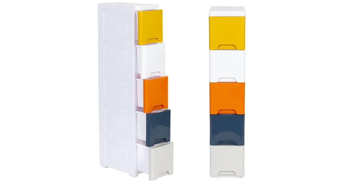 Ta praktyczna i kolorowa komoda to idealne rozwiązanie do uporządkowania pokoju dziecięcego lub łazienki. W pięciu kolorowych szufladach z łatwością przechowasz zabawki, kosmetyki lub inne drobiazgi.