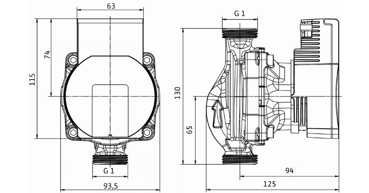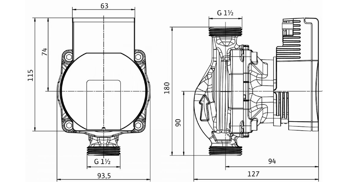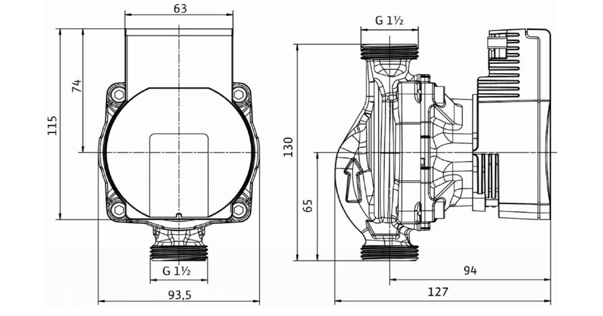 Pompa obiegowa Giacomini P76WIY016 (Wilo Para), 25-130/7, wysokość pompowania 7 m H2O, przyłącze G 1 1/2" gwint zewnętrzny, długość 130 mm opis