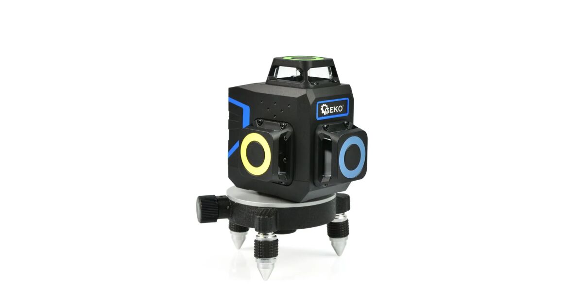 Ten samopoziomujący laser krzyżowy Geko G03308 3D 360° wyświetla 12 zielonych linii lasera (4 poziome i 8 pionowych), zapewniając doskonałą widoczność w każdych warunkach oświetleniowych. Idealny do renowacji, budowy i wszelkich prac precyzyjnych, gdzie potrzebne są linie poziome, pionowe, kąty 90° i nachylenia. ⚙️