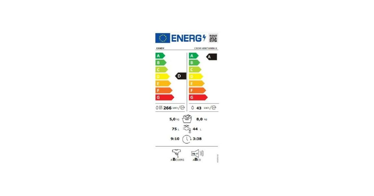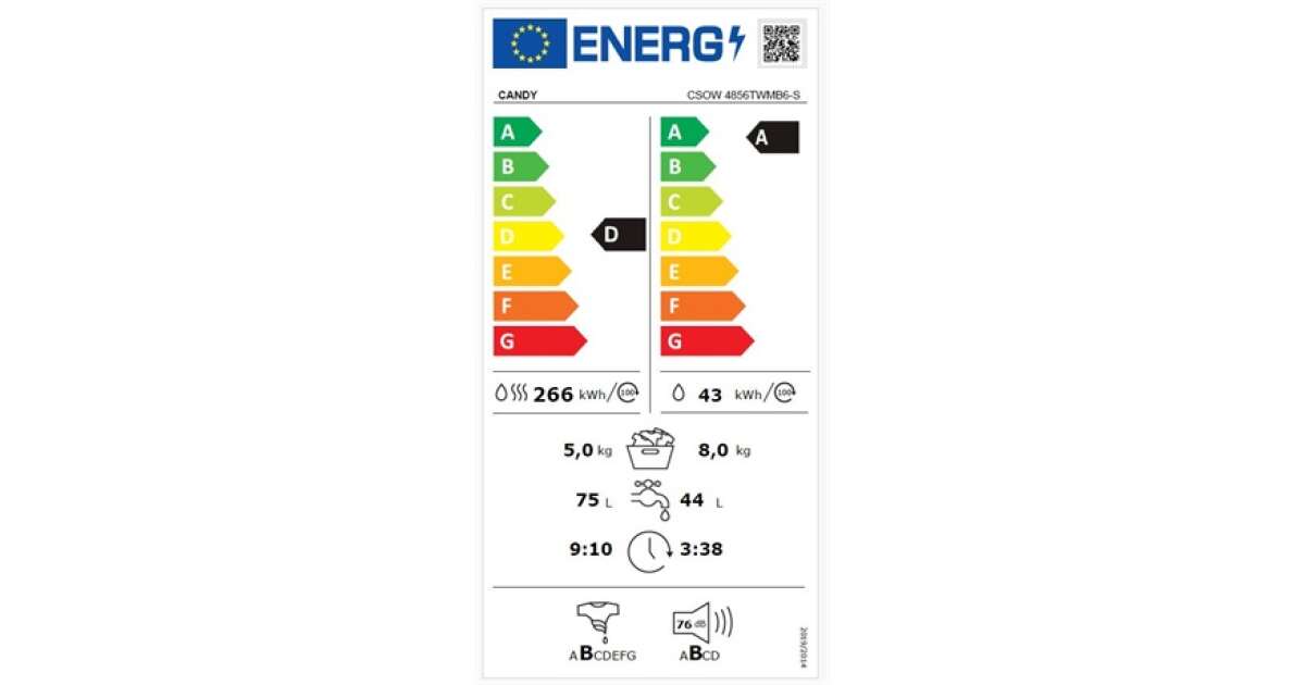 Pralko-suszarka Candy CSOW 4856TWMB6-S, 8 kg - 5 kg, 1400 obr./min, 16 programów, MixPower System, klasa energetyczna D