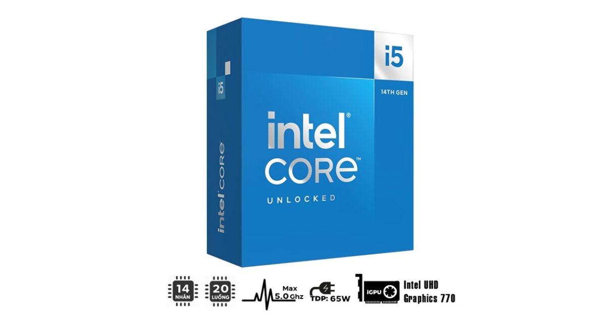 Procesor Intel Core i5-14500 14C/20T (EC 1,9 GHz, PC 2,6 GHz, 5,0 GHz Boost, 24 MB, 65 W, LGA1700)