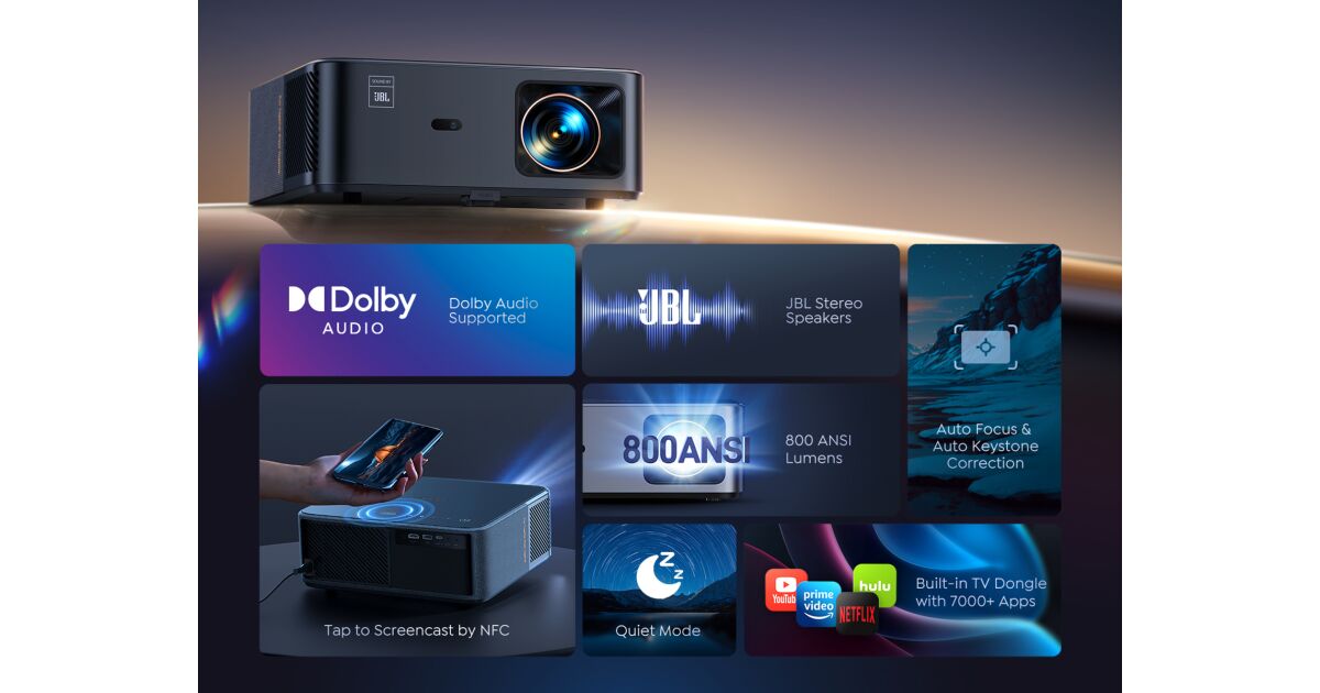 Projektor LCD WiFi6 1080p NFC Yaber K2s opis