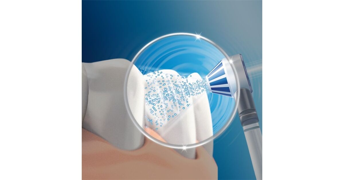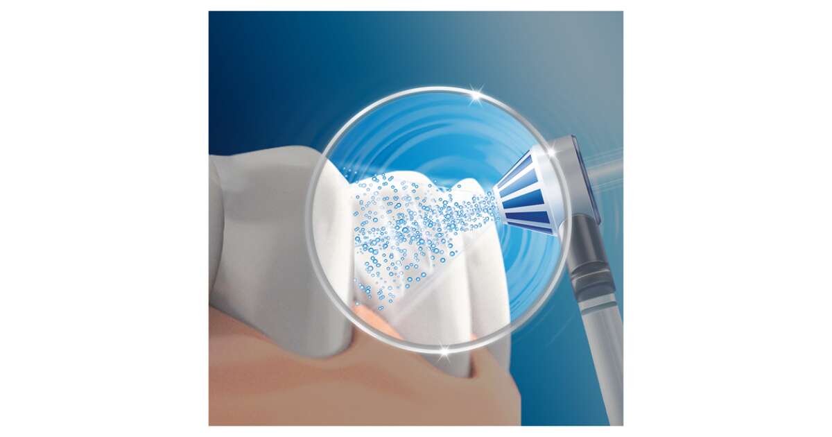 -Prysznic do ust Oral-b md20, system mikrobąbelkowy, 5 ustawień, 4 bary, regulowane ciśnienie płukania, 4 dysze 10PO010026 opis