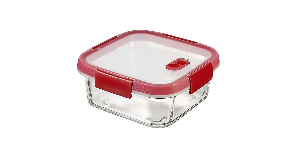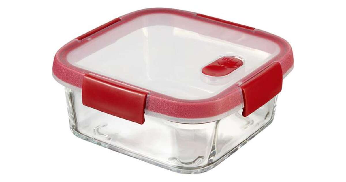 -CURVER Pojemnik na żywność, kwadratowy, szklany, 0,7 l, CURVER "Smart Cook", czerwony opis