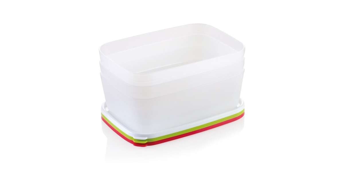 - Oszczędność miejsca: Pojemniki i pokrywki można układać jeden na drugim i jeden w drugim.