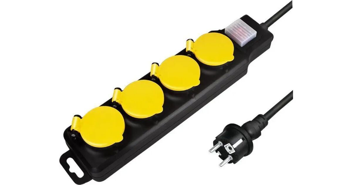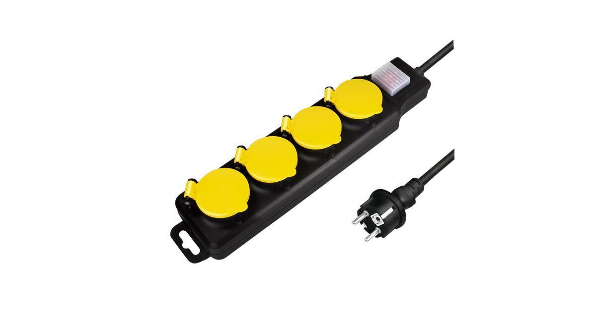 Ten solidny przedłużacz, idealny do użytku na zewnątrz, to doskonałe rozwiązanie do ogrodu, garażu lub na plac budowy. Posiada cztery gniazda CEE 7/3, dzięki czemu możesz podłączyć kilka urządzeń jednocześnie. Wbudowany podświetlany włącznik ułatwia obsługę, a blokady bezpieczeństwa zapobiegają przypadkowemu odłączeniu.