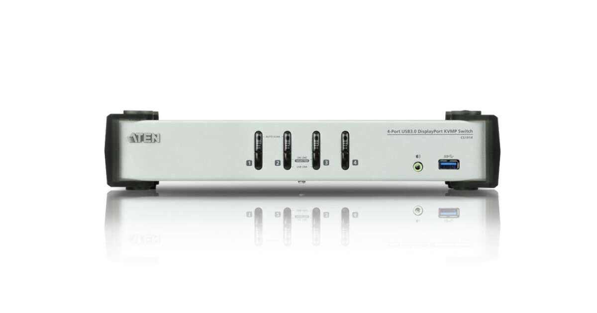4-portowy przełącznik ATEN CS1914 USB 3.0 DisplayPort KVMP™ oferuje najnowsze innowacje w technologii przełączania KVM w odpowiedzi na wzrastające zapotrzebowanie na obraz wideo wyższej jakości i większe prędkości transmisji nowoczesnych komputerów. Przełącznik CS1914 zapewnia doskonałe rozdzielczości do 3840 x 2160 przy 30 Hz, koncentrator USB 3.1 Gen 1 o przepustowości SuperSpeed 5 Gb/s i bardziej przyjazną dla użytkownika obsługę.