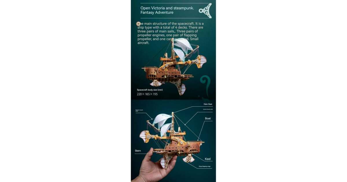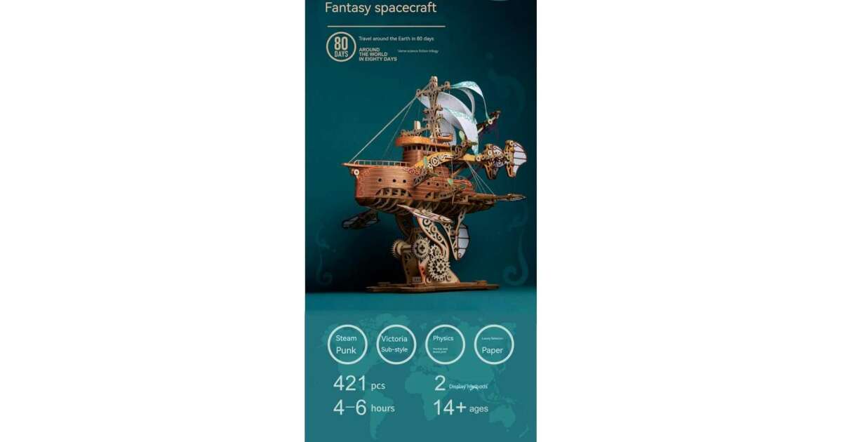 Zanurz się w świecie klasycznej powieści Juliusza Verne'a z tym niesamowitym 421-częściowym drewnianym puzzle 3D! Zbuduj własny fantastyczny statek powietrzny i ciesz się kreatywnym wyzwaniem i pięknym efektem końcowym.