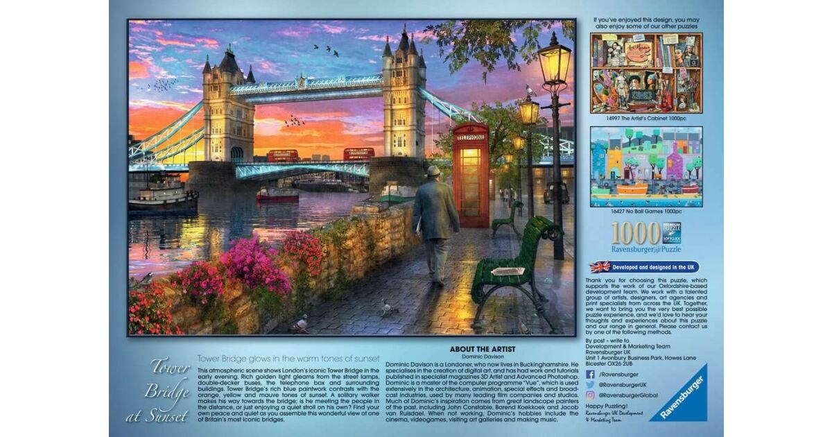 Zamów już teraz Ravensburger Tower Bridge zachód słońca 1000-elementowy puzzle i ciesz się londyńską atmosferą!