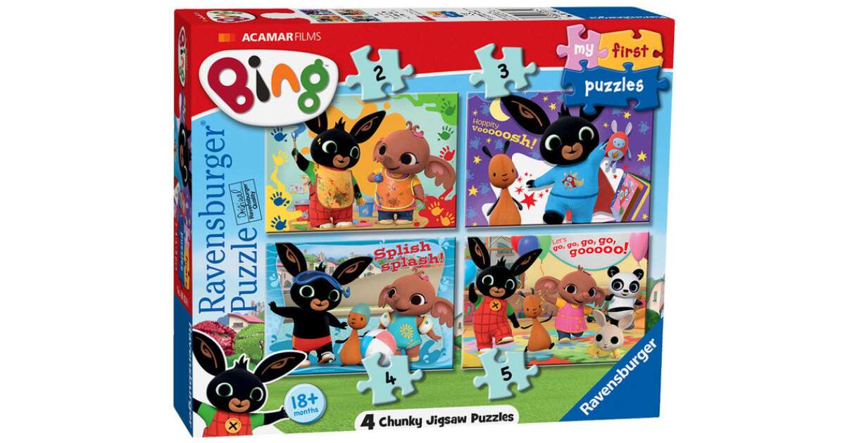 - 4 kolorowe, wesołe puzzle Bing Zajączek (2, 3, 4 i 5 elementów)