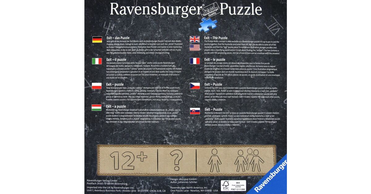 Odkryj tajemnice magicznego Lasu Unikornów z tą 759-elementową układanką Ravensburger Exit Puzzle! To nie tylko zwykła układanka, ale też ekscytująca przygoda pełna ukrytych wskazówek i zagadek. Podczas układania puzzli odkryjesz ukryte tropy, które pomogą ci rozwikłać tajemnicę. Prawidłowe rozwiązanie znajdziesz w załączonej kopercie! Dołączony kod QR prowadzi do strony pomocy Ravensburger, jeśli utkniesz.