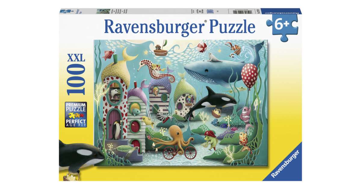 Zanurz się w świecie 100-elementowej układanki Ravensburger i odkryj urzekające tajemnice głębin morskich! Ta piękna układanka ma unikalny, nowoczesny design, z uroczymi małymi domkami, wesołymi rybami, jeżdżącą na rowerze ośmiornicą i wielorybem niosącym koszyk na zakupy. Rzeźbienie detali jest imponujące, gwarantując zabawę i edukacyjną rozrywkę.