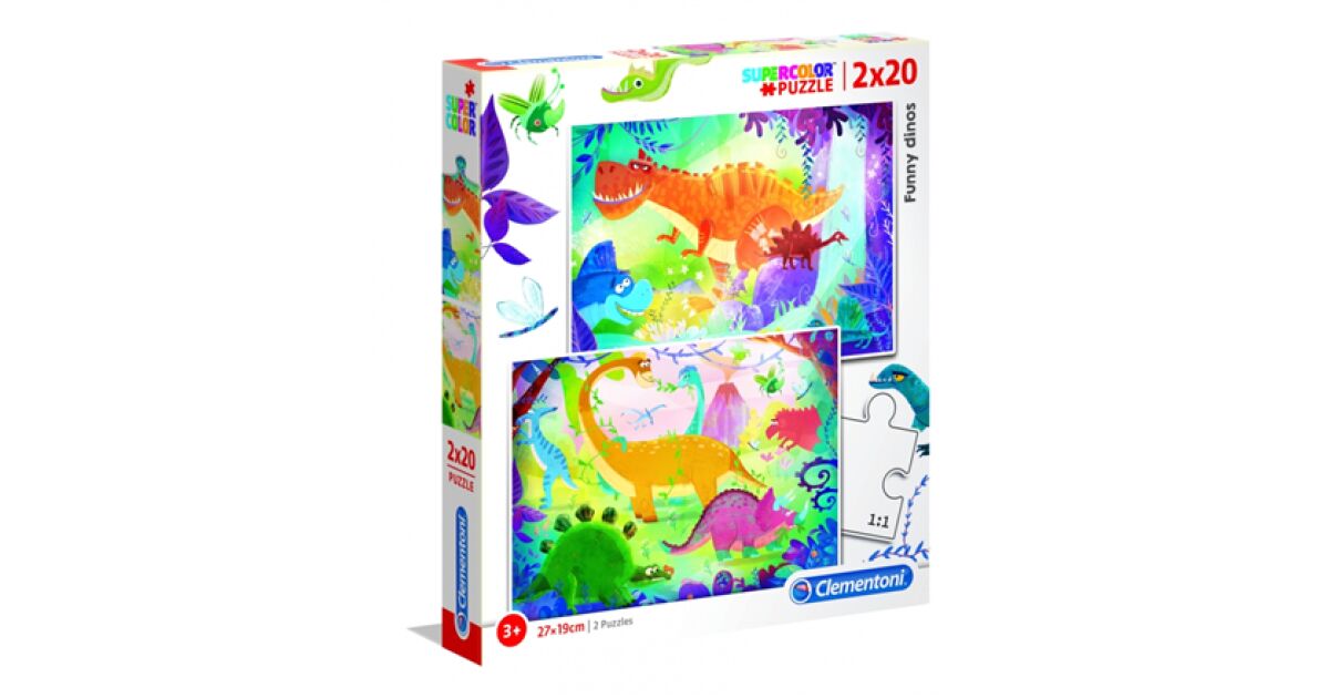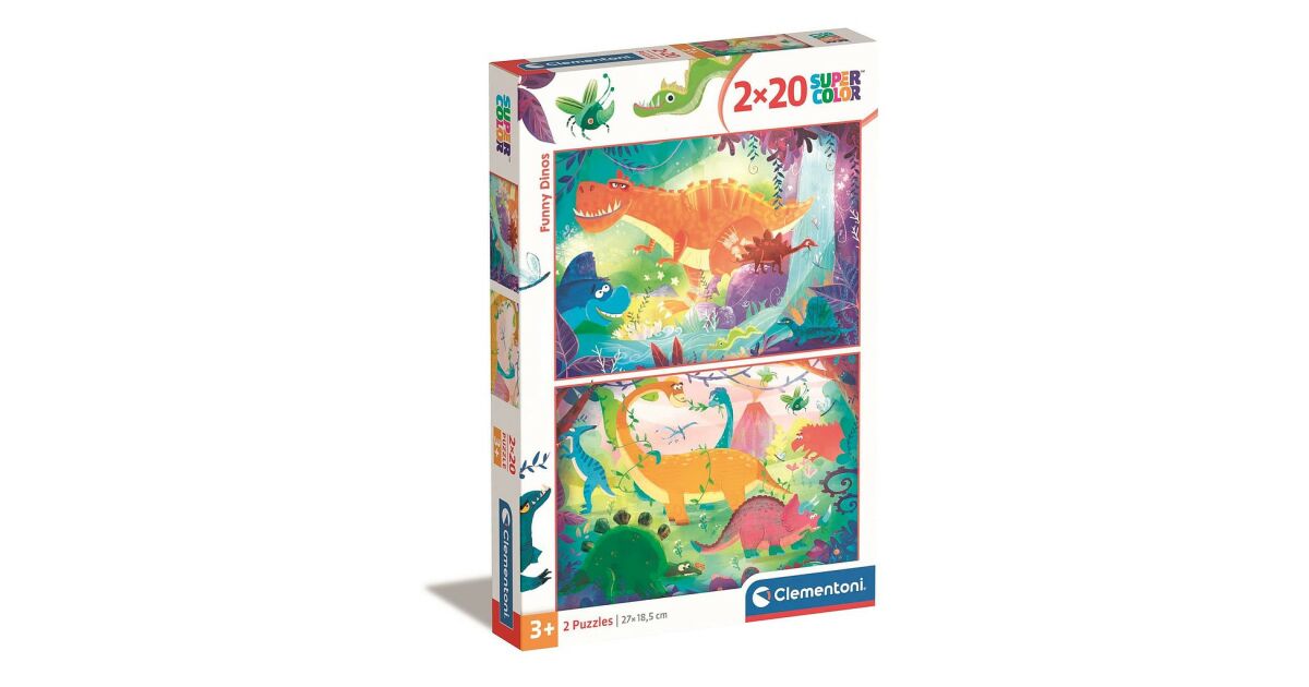 Zestaw Duo, Clementoni, Supercolor, Zabawne dinozaury, Puzzle, Unisex, 3+ lat, 2 x 20 elementów opis