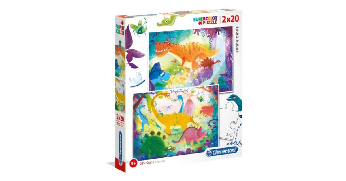 Zestaw Duo, Clementoni, Supercolor, Zabawne dinozaury, Puzzle, Unisex, 3+ lat, 2 x 20 elementów recenzje