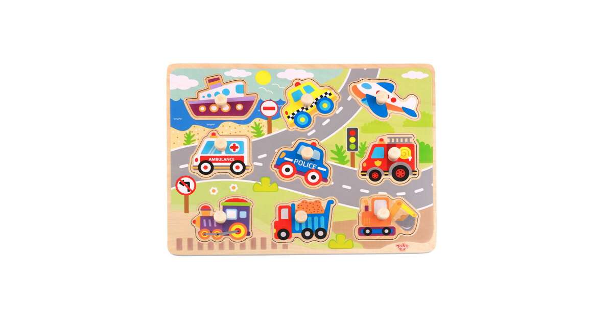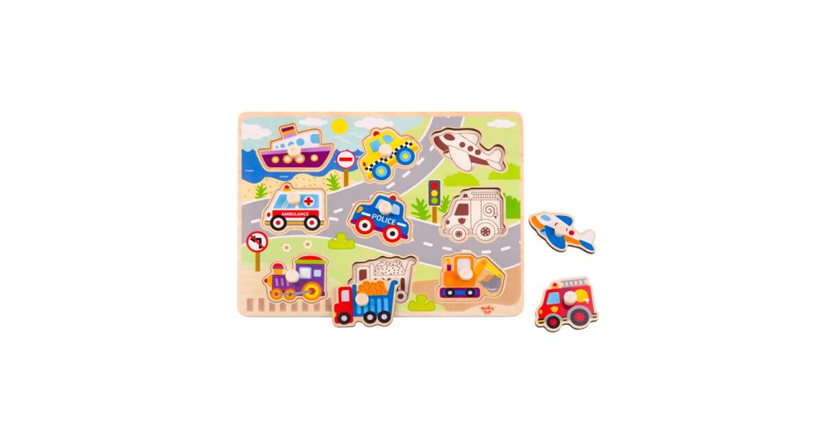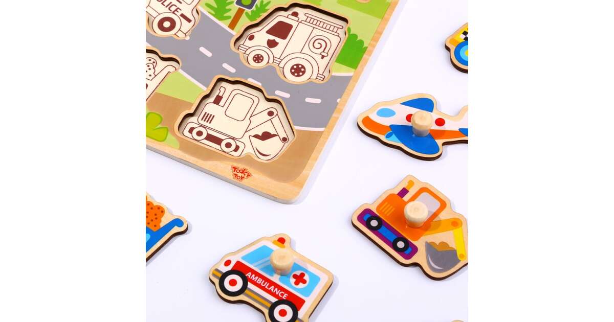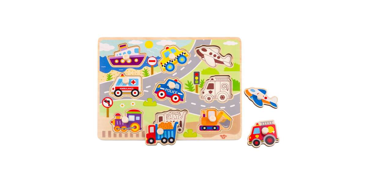 Tooky Toy: Puzzle z uchwytami, 9 elementów - Pojazdy opis