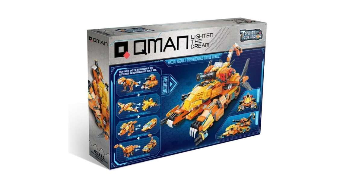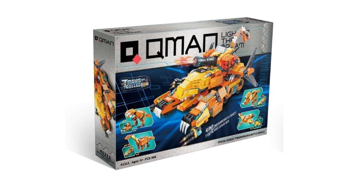 Ten niesamowity zestaw QMAN® 41311 zawiera 988 klocków, z których możesz zbudować 4 różne dinozaury, a z każdego z nich pojazd bojowy! Ale zabawa na tym się nie kończy! Możesz połączyć cztery dinozaury, aby stworzyć ogromnego, przerażającego robota! 🤩