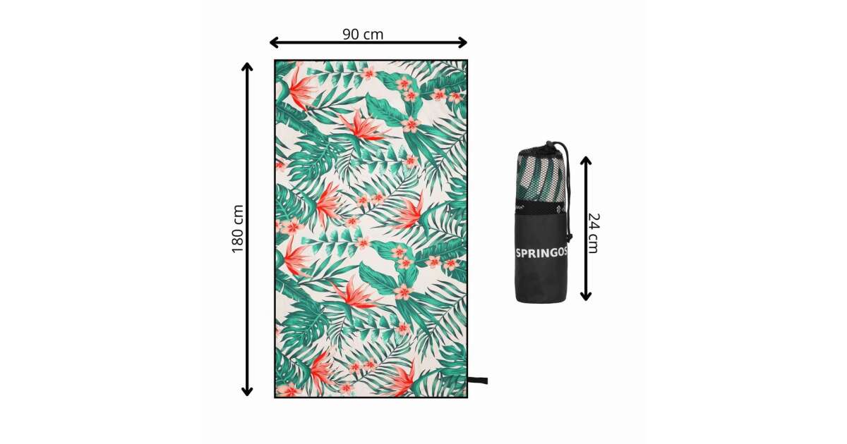 Ten szybkoschnący ręcznik plażowy Springos® to idealny wybór na plażę, basen, a nawet na kemping! Wykonany z wysokiej jakości, miękkiego materiału, a jego tropikalny kwiatowy wzór doda Ci świetnego humoru. Szybko schnie, więc nie musisz długo czekać, aż wyschnie. Posiada praktyczną torbę do przenoszenia, dzięki czemu łatwo zabierzesz go ze sobą wszędzie.