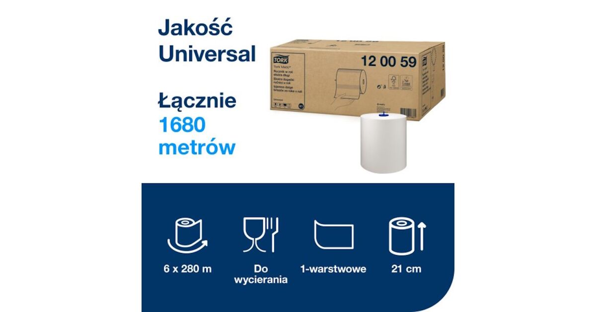 .flex-container {display: flex; padding: 3%;} .flex-item {flex: 1; padding: 2%;} .content-image {max-width: 100%;height: auto;}System dozowania ręczników w roli Tork Matic® (H1) charakteryzuje się dużą pojemnością – idealną dla często odwiedzanych łazienek w obiektach takich jak szkoła czy lotnisko. Atrakcyjny cenowo ręcznik do rąk, który zaspokaja podstawowe potrzeby Długie rolki redukują potrzebę częstej konserwacji dzięki rzadszej wymianie wkładów Dozowanie po jednym odcinku zmniejsza zużycie i poprawia higienę Dane techniczne: Długość rolki 280 m Szerokość rolki 21 cm Średnica rolki 19 cm Wewnętrzna średnica gilzy 3.8 cm Warstwa 1 Kolor Biały 5000 pozycji z kategorii: Artykuły domowe Artykuły szkolne Artykuły spożywcze Utrzymanie czystości Sprzęt biurowy Tusze i tonery Artykuły BH Gadżety reklamowe Pieczątki Rodzaj: Do podajników w rolce