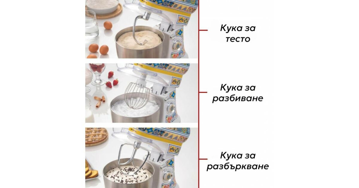- Wszechstronne zastosowanie: Różne akcesoria (mieszadło, hak do ciasta, trzepaczka) do wszystkiego, od ciasta po kremy 🍰