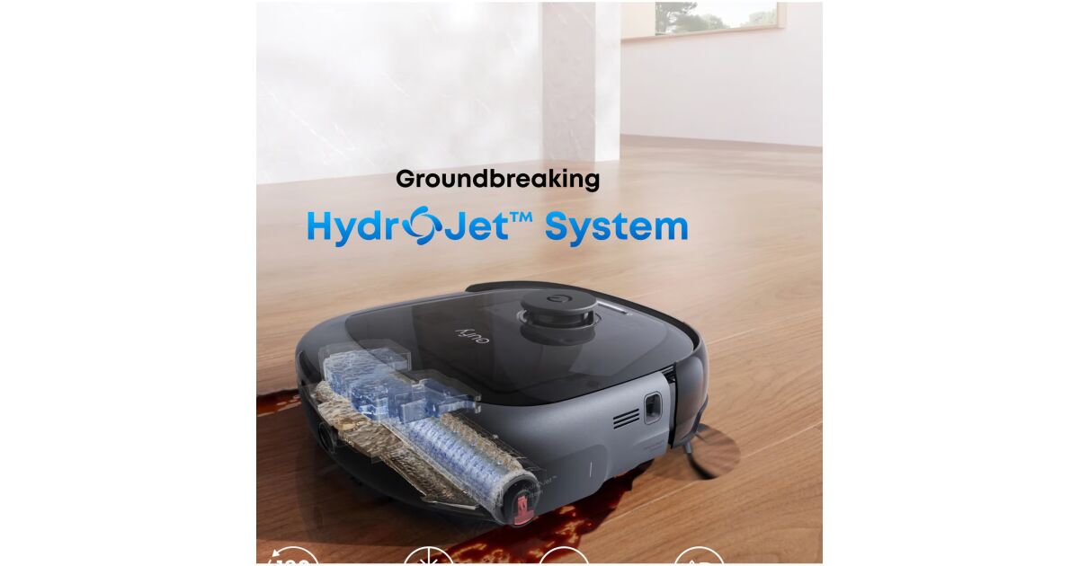 - System mopowania HydroJet™: System z podwójnym zbiornikiem na wodę i skrobakiem czyści mop w czasie rzeczywistym, dzięki czemu jest zawsze świeży i skuteczny. 💧